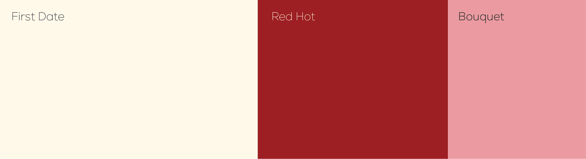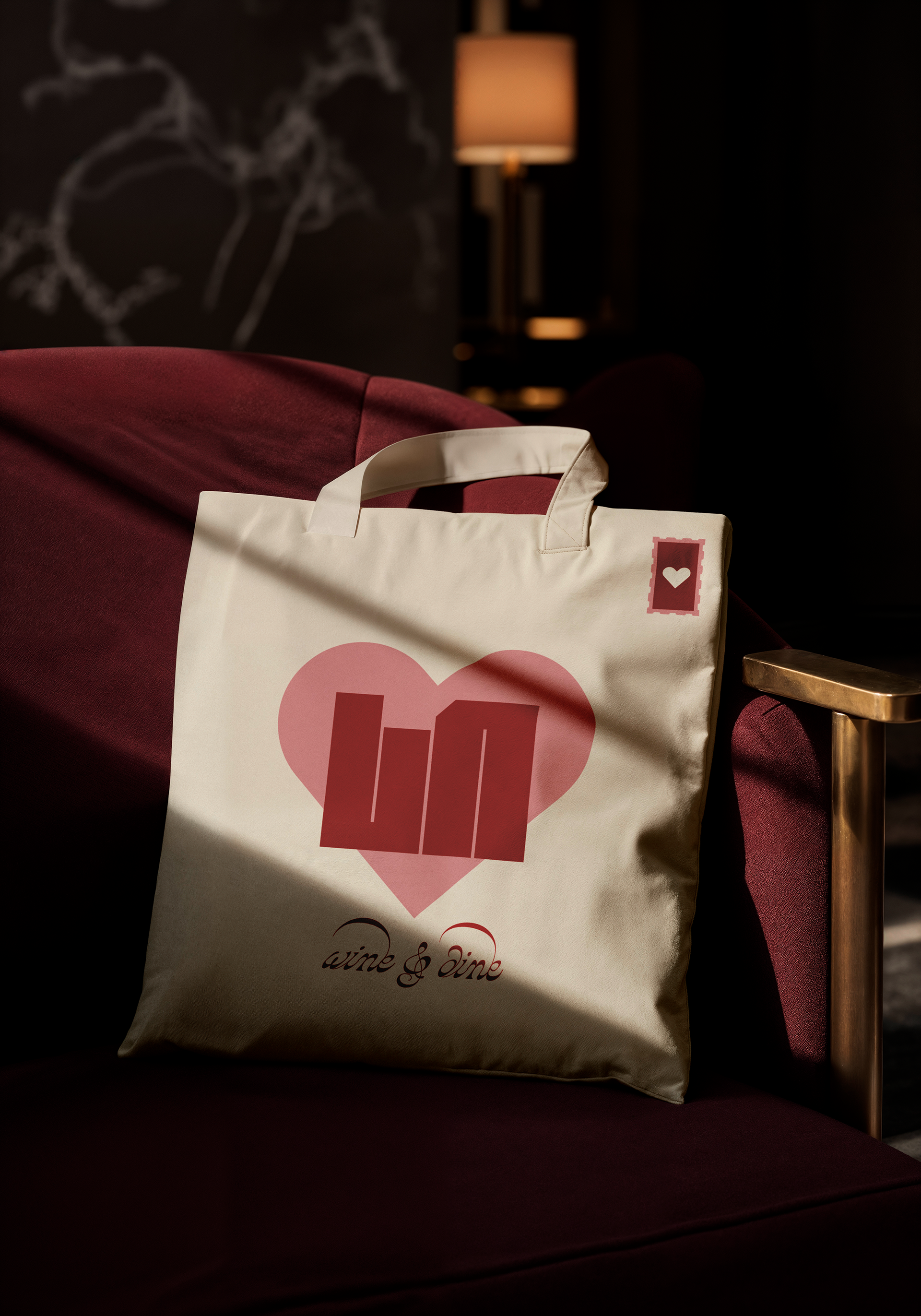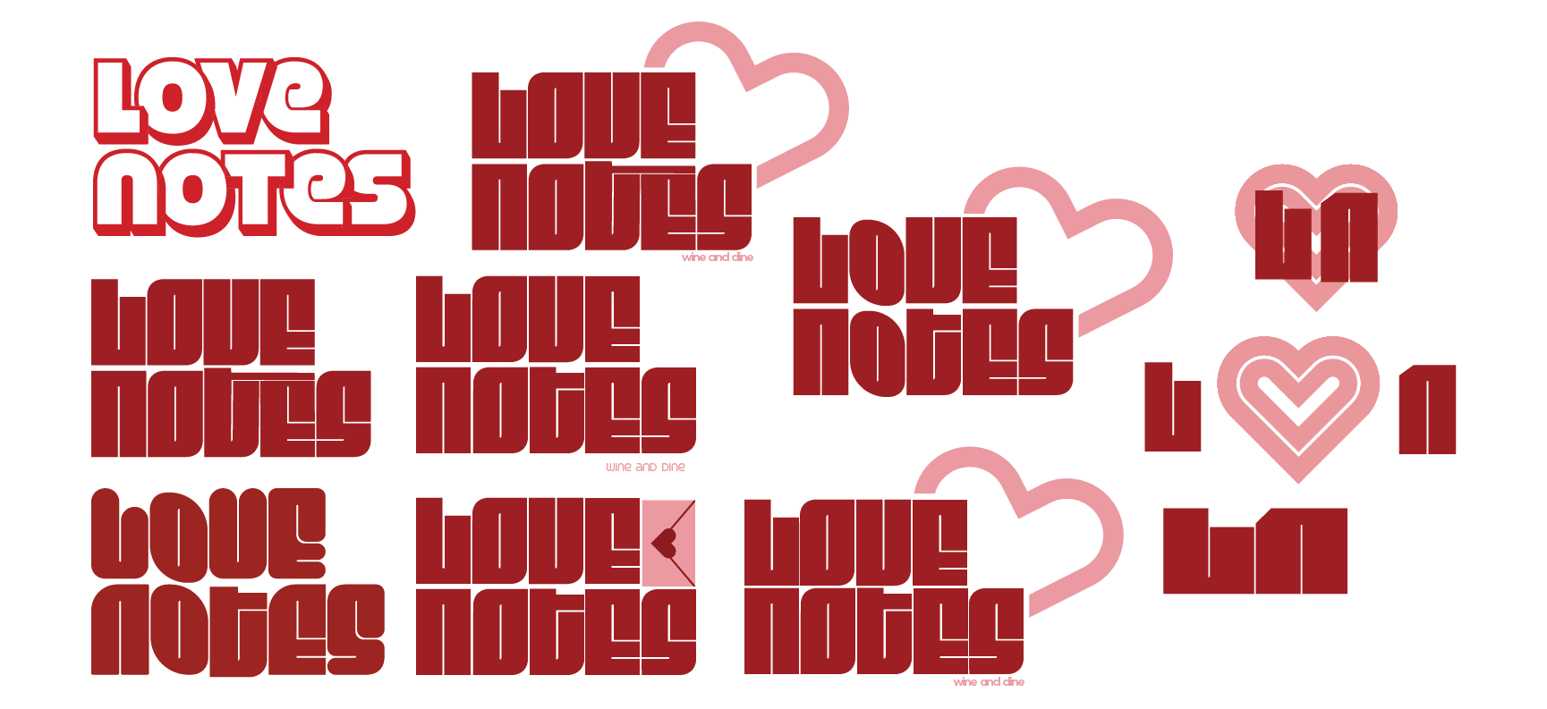 The main three colors driving the visual identity area soft creamy white, a rich red, and a warm pink. The classic valentines day colors balance out the modern and bold typeface of the logo, contributing to an overall modern take on romance
